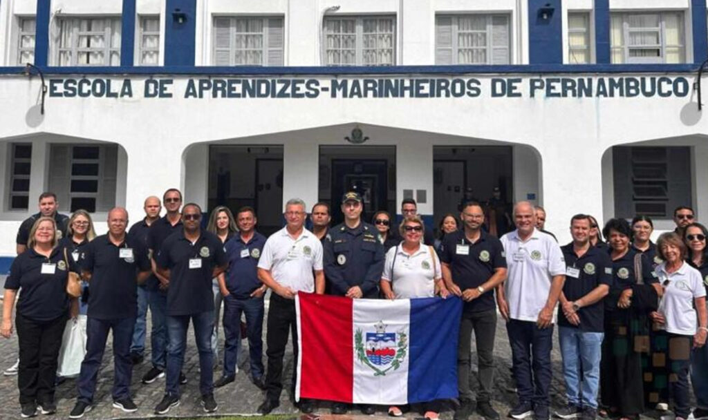 Os estagiários do Curso de Política e Estratégia (CEPE 2025) da ADESG de Alagoas realizaram uma visita estratégica à Escola de Aprendizes-Marinheiros de Pernambuco, reforçando na prática os conceitos das expressões do poder nacional. A atividade integrou a viagem de estudos do curso, permitindo aos participantes observar “in loco” o funcionamento de uma organização militar essencial à Marinha do Brasil.